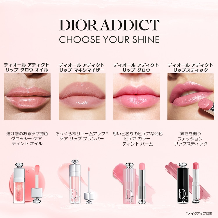 ディオール リップスティックは、オイルフェーズが輝きでコーティングされることにより、唇にツヤを出します。このため、艶めく仕上がりが長持ちします。